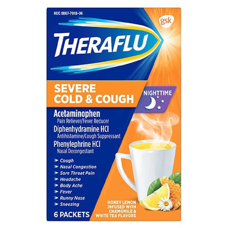 Theraflu Nighttime Severe Cold & Cough – Honey Lemon with Chamomile & White Tea